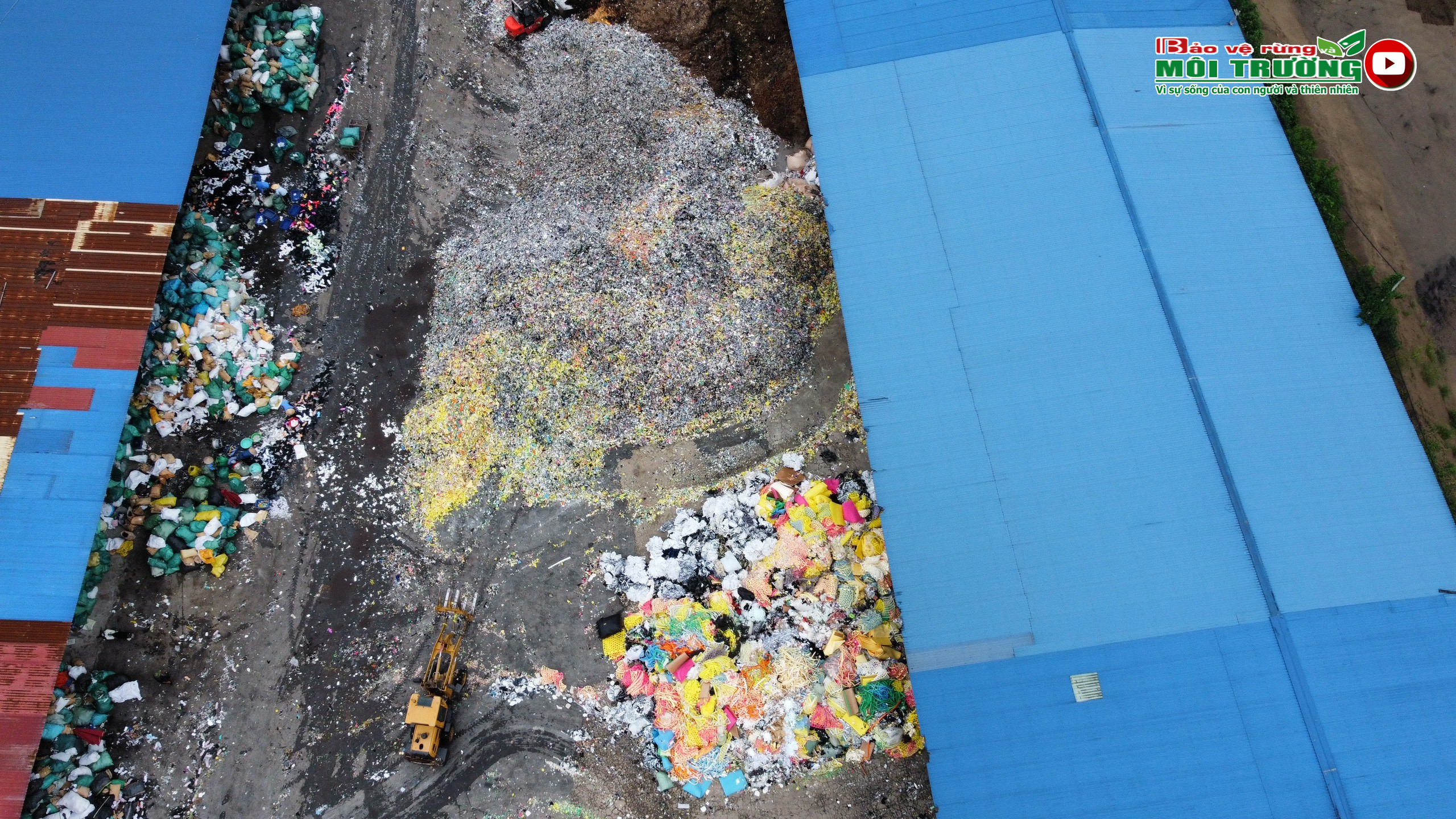 Hình ảnh ghi nhận tại xưởng tập kết rác thải của Công ty TNHH Hoa Mai (Ảnh chụp từ flycam).